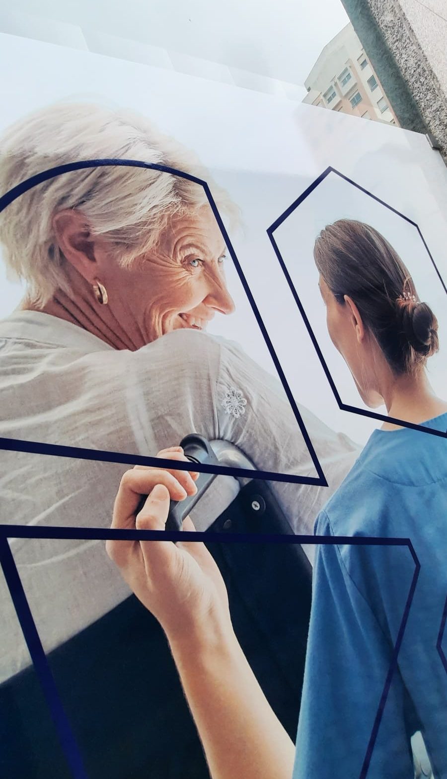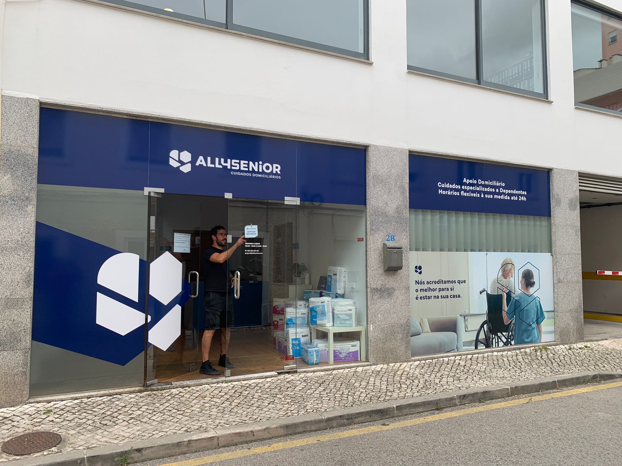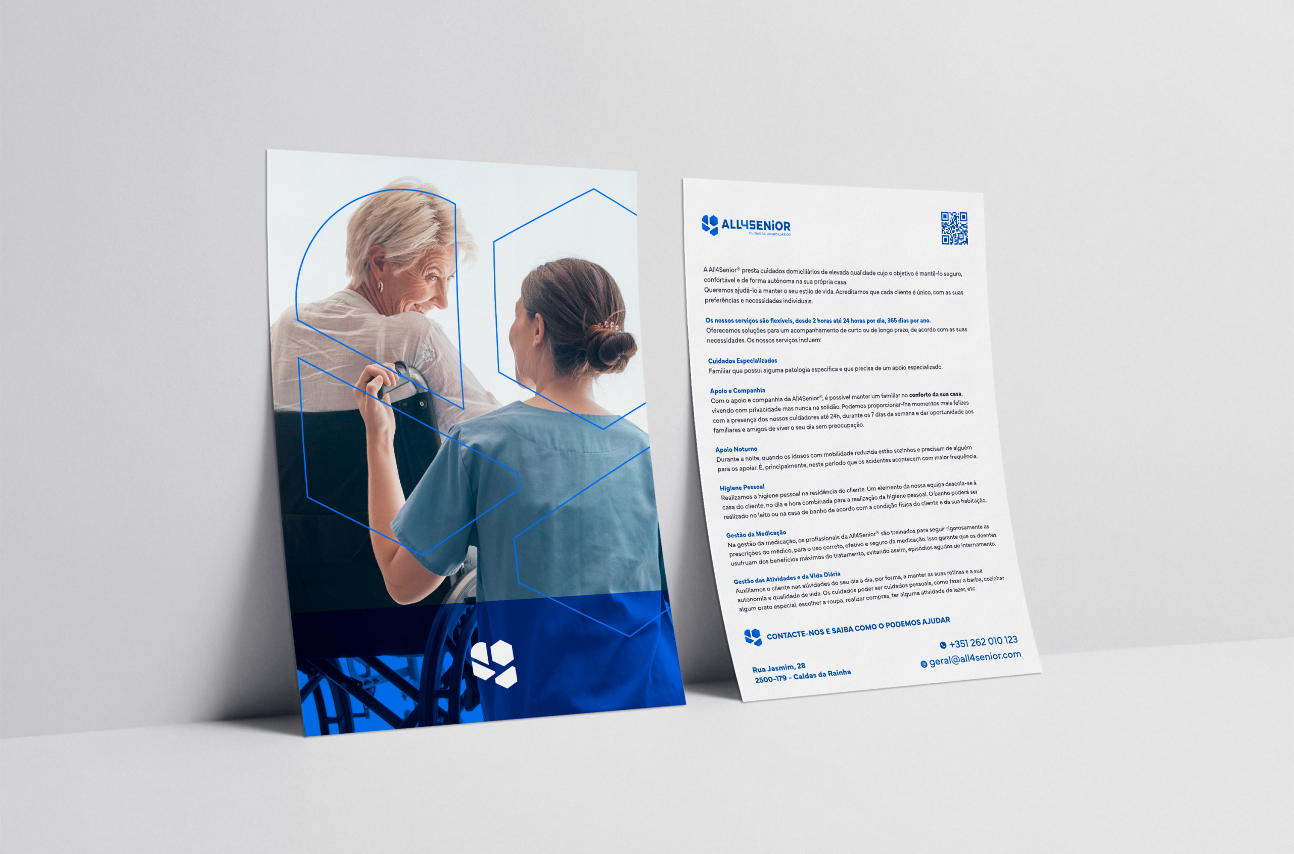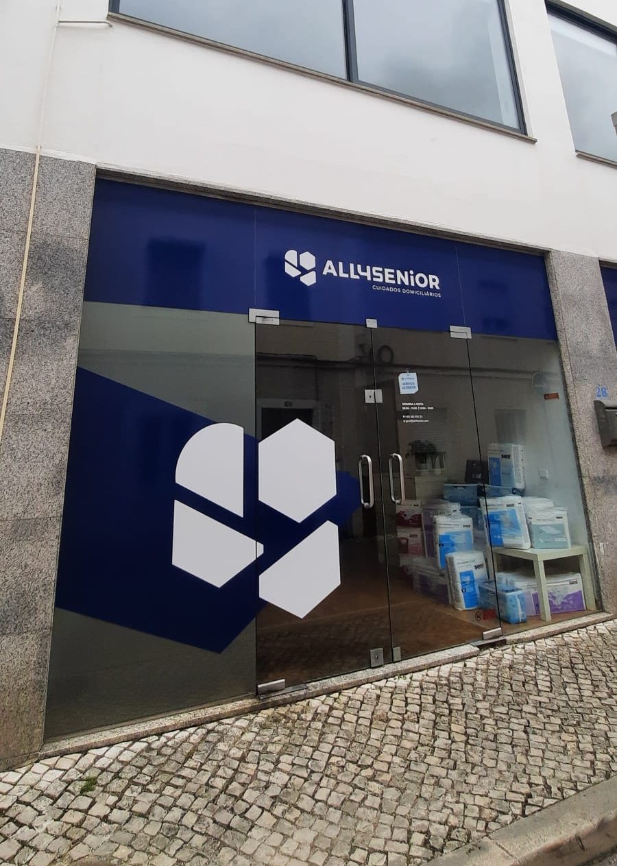 Publicidade nova: Em conjunto com a Dois Publicidade criámos a publicidade nova para todo o espaço existente, de forma a posicionar a marca no meio envolvente e a destacar o espaço. Mantemos a comunicação e o apoio para pontos gráficos e publicitários que vão sendo precisos de forma a haver um equilibrio visual sempre que a ALL4SENIOR aparece